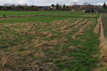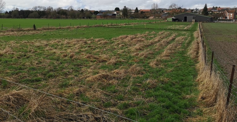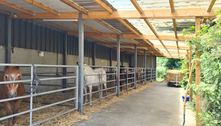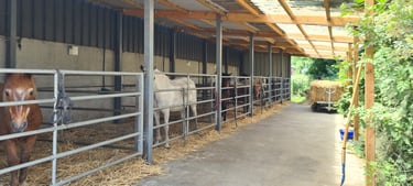 Deux stabulations au milieu de 2 hectares de pâtures enherbées, pour faire grandir les poulains en troupeau.