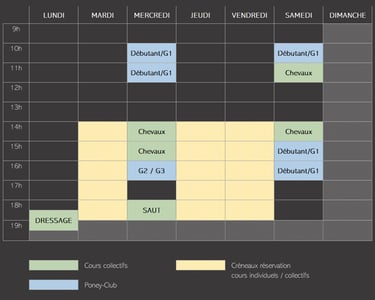 Retrouvez notre planning hebdomadaire ci-dessous.