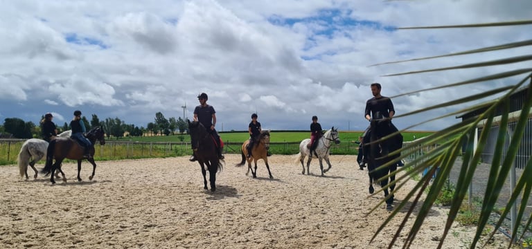 Nos cours collectifs sont conçus pour tous les niveaux, offrant une aventure palpitante pour les débutants intrépides et un terrain d'exploration continu pour les cavaliers plus chevronnés.