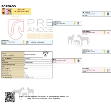 Plusieurs de ses poulains sont visibles sous la selle à l'élevage et témoignent de ses qualités de géniteur. Il a engendré 53 poulains PRE depuis 2008.