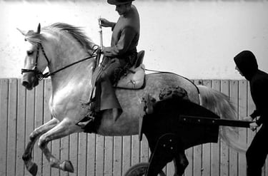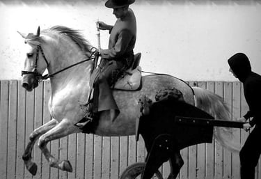 Nos spectacles équestres présentent des numéros de dressage, de garrocha, de voltige cosaque, de liberté, de rênes à la ceinture, de tissu et bien plus encore. Nos visiteurs ont ainsi l'opportunité de découvrir la polyvalence et le courage de nos généreux chevaux Pure Race Espagnole.