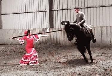 > La traditionnelle Fête du Cheval Espagnol, en été, où l'espace d'un après-midi, les spectateurs partagent avec nous l'ambiance festive des ferias espagnoles en dégustant nos délicieuses tapas et paellas géantes.